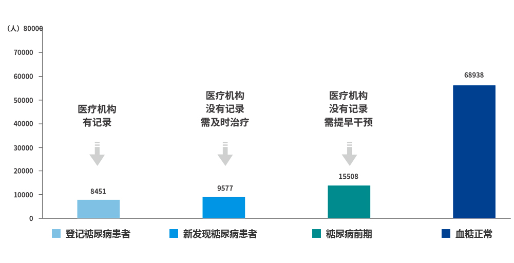 2019年我國因慢性病導致的死亡占總死亡88.5%,其中心腦血管病、癌癥、慢性呼吸系統(tǒng)疾病死亡比例為80.7%,18歲以上居民Ⅱ型糖尿病患病率和糖尿病前期比例分別高達10.40%和15.50%,高血壓患病率25.20%,血脂異常患病率40.40%,慢性病防控工作仍面臨巨大的挑戰(zhàn)。 博奧晶典針對社區(qū)慢性病防控形勢,自主創(chuàng)新研發(fā)了“智慧中西醫(yī)社區(qū)慢性病健康管理技術體系”,結合當?shù)蒯t(yī)療衛(wèi)生資源與分級診療體系,創(chuàng)新性地應用于社區(qū)慢性病健康管理服務,得到了地方政府和學界的廣泛認可與支持。2017年5月,重慶市兩江新區(qū)在全國率先應用“智慧中西醫(yī)社區(qū)慢性病健康管理技術體系”開展社區(qū)糖尿病健康管理項目。 目前,重慶兩江新區(qū)“社區(qū)糖尿病健康管理項目”已經(jīng)圓滿完成。項目累計建檔人數(shù)達102,505人。經(jīng)統(tǒng)計,發(fā)現(xiàn)糖尿病患者約1.81萬人,其中已在冊登記患者近8500人,新發(fā)現(xiàn)糖尿病患者近9600人;發(fā)現(xiàn)高血壓患者約占篩查對象總數(shù)的30.30%、肥胖人群約占篩查對象總數(shù)的13.60%。項目建立了重慶市兩江新區(qū)糖尿病樣本庫及糖尿病健康管理大數(shù)據(jù)平臺,為后續(xù)開展科學研究、政策制定提供了數(shù)據(jù)基礎和實證案例,按照直接效益和社會效益疊加的計算方法,總效益成本比為25.67:1,即每投入1元成本所產(chǎn)生的總體效益為25.67元。智慧中西醫(yī)社區(qū)慢性病健康管理技術體系和成熟的服務經(jīng)驗得到了多地政府的認可和支持。隨后,遼寧省阜新市、云南省昆明市陸續(xù)開展以高血壓、高血脂、高血糖等篩查與健康管理為核心的社區(qū)慢性病健康管理項目,北京市、東莞市等城市項目也在穩(wěn)步推進過程中。 重慶兩江新區(qū)糖尿病健康管理項目數(shù)據(jù)統(tǒng)計