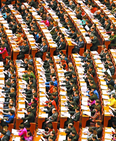 5日,第十二屆全國(guó)人民代表大會(huì)第三次會(huì)議在北京人民大會(huì)堂開幕。這是代表在認(rèn)真聽會(huì)。新華社記者 陳建力攝? 來(lái)源:北京日?qǐng)?bào)