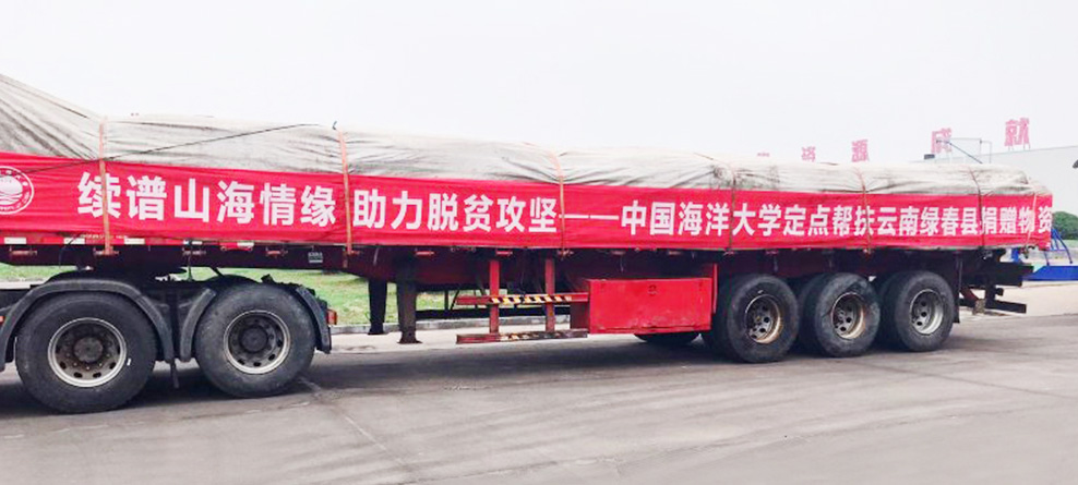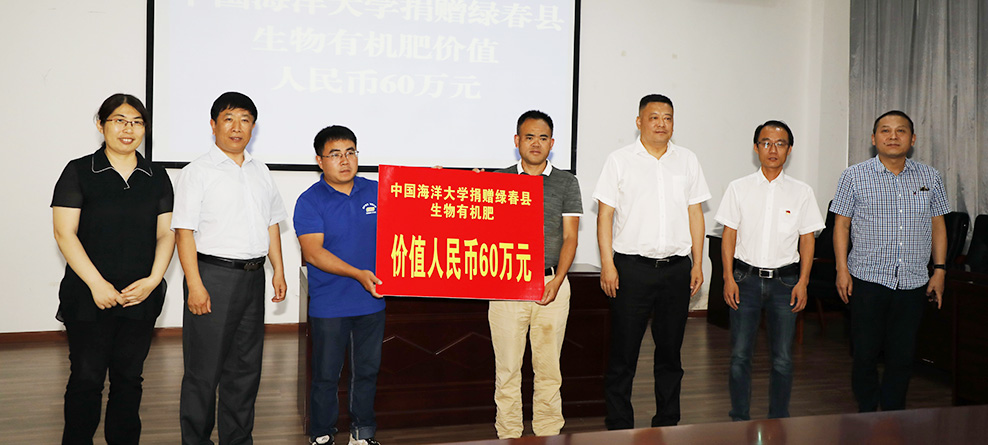 代表中國(guó)海洋大學(xué)捐贈(zèng)給云南綠春縣價(jià)值60萬元的生物有機(jī)肥。