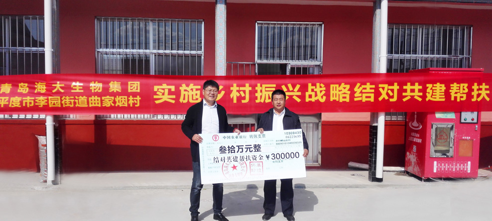 積極響應(yīng)國(guó)家鄉(xiāng)村振興戰(zhàn)略,為平度曲家煙村捐贈(zèng)100萬元。