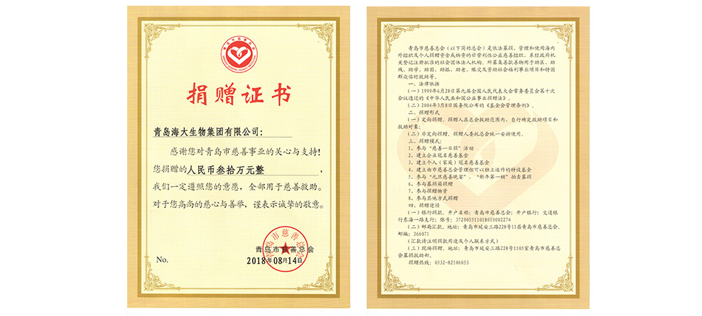 為青島農(nóng)業(yè)大學(xué)捐贈(zèng)100萬元,設(shè)立"海狀元獎(jiǎng)學(xué)金"。