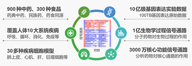 歷經(jīng)8年的實驗平臺優(yōu)化和數(shù)據(jù)積累,目前建立了大規(guī)模的中藥分子功能數(shù)據(jù)庫,包括1200種中藥和食品對人體細(xì)胞的10億級真實基因表達(dá)數(shù)據(jù)和3000多萬條核心功能信號通路數(shù)據(jù)。